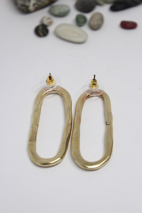 Brass, Hand Formed, Oval Stud Earrings - #111