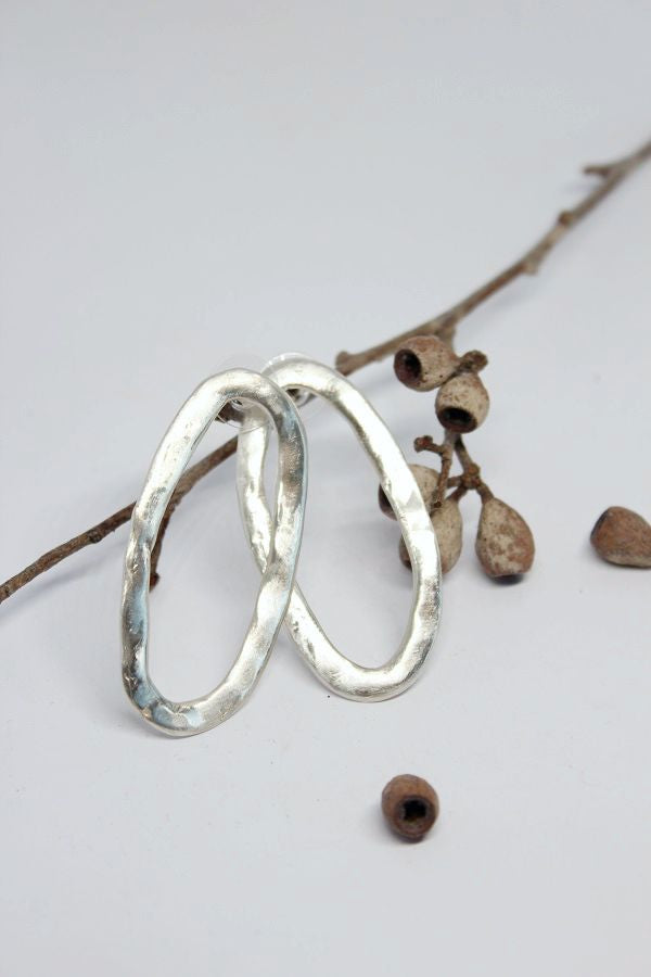 Silver, Oval Stud Earrings- #115